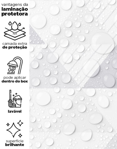Nossos adesivos são laváveis e incluem linhas especiais para áreas úmidas, como box, pias, pisos, entre outros. Para locais com contato frequente com água ou que demandam limpezas constantes, sugerimos a aplicação da película protetora. Ela proporciona um acabamento brilhoso e pode ser facilmente higienizada com pano úmido e sabão neutro.