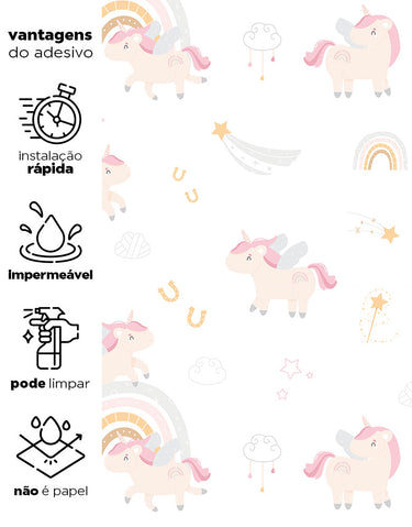 Dê um toque de magia ao quarto das crianças com o Papel de Parede Adesivo Unicórnio Estelar. Lavável e fácil de aplicar, ele traz cor e encanto ao ambiente infantil.