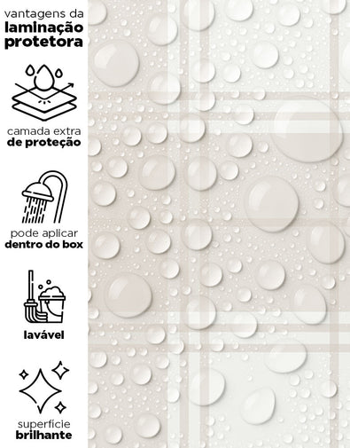 Nossos adesivos são laváveis e incluem linhas especiais para áreas úmidas, como box, pias, pisos, entre outros. Para locais com contato frequente com água ou que demandam limpezas constantes, sugerimos a aplicação da película protetora. Ela proporciona um acabamento brilhoso e pode ser facilmente higienizada com pano úmido e sabão neutro.