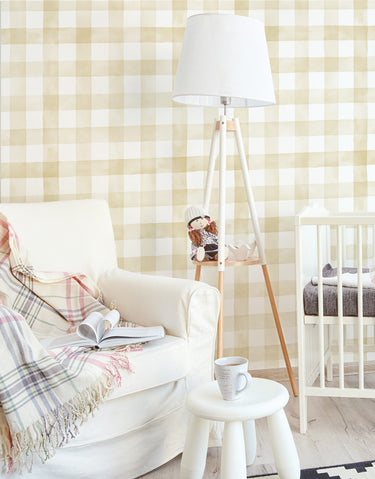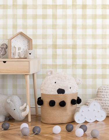 Papel de Parede Adesivo Xadrez Vichy Aquarela Amarela. É perfeito para criar um ambiente infantil aconchegante e cheio de estilo. Com tons suaves inspirados na cor gengibre e um design aquarelado delicado, ele adiciona charme e elegância ao quarto das crianças. Esse papel de parede, além de prático e fácil de aplicar, oferece uma decoração moderna e leve, ideal para transformar o espaço dos pequenos em um lugar acolhedor e sofisticado.