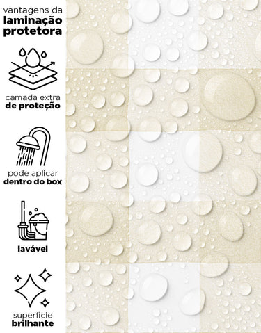 Nossos adesivos são laváveis e incluem linhas especiais para áreas úmidas, como box, pias, pisos, entre outros. Para locais com contato frequente com água ou que demandam limpezas constantes, sugerimos a aplicação da película protetora. Ela proporciona um acabamento brilhoso e pode ser facilmente higienizada com pano úmido e sabão neutro.