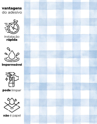 Transforme seu ambiente com o Papel de Parede Adesivo Xadrez Vichy Aquarela Azul Bebê! Com uma delicada estampa em aquarela, este adesivo traz um toque de suavidade e modernidade ao seu espaço. Ideal para quartos infantis, sua aplicação é fácil e prática, permitindo uma rápida renovação do ambiente. Feito com material de alta qualidade, é resistente e fácil de limpar, perfeito para quem busca beleza e funcionalidade. Dê um novo significado à decoração da sua casa!