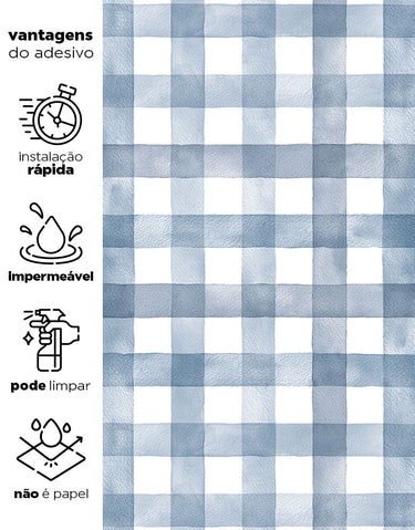 O papel de parede xadrez azul adesivo é perfeito para quem busca transformar o ambiente com estilo, praticidade e personalidade. Com seu elegante padrão xadrez Vichy aquarelado em tons de azul noturno, ele combina o charme clássico com um toque moderno, criando uma atmosfera aconchegante e sofisticada. É ideal para quartos, salas e até espaços comerciais que pedem mais vida e elegância.
