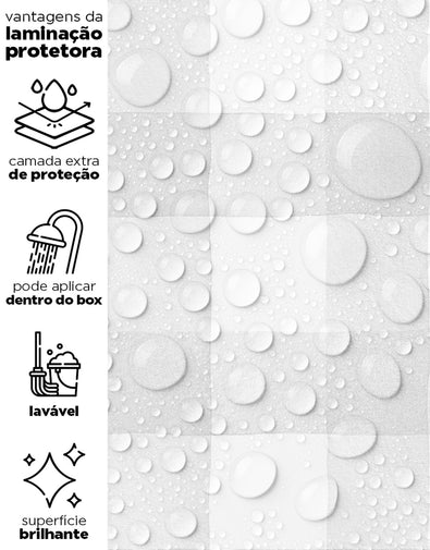 Nossos adesivos são laváveis e incluem linhas especiais para áreas úmidas, como box, pias, pisos, entre outros. Para locais com contato frequente com água ou que demandam limpezas constantes, sugerimos a aplicação da película protetora. Ela proporciona um acabamento brilhoso e pode ser facilmente higienizada com pano úmido e sabão neutro.