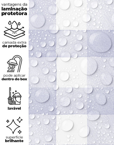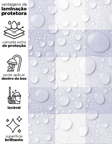 Nossos adesivos são laváveis e incluem linhas especiais para áreas úmidas, como box, pias, pisos, entre outros. Para locais com contato frequente com água ou que demandam limpezas constantes, sugerimos a aplicação da película protetora. Ela proporciona um acabamento brilhoso e pode ser facilmente higienizada com pano úmido e sabão neutro.