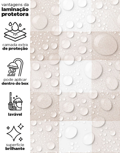 Nossos adesivos são laváveis e incluem linhas especiais para áreas úmidas, como box, pias, pisos, entre outros. Para locais com contato frequente com água ou que demandam limpezas constantes, sugerimos a aplicação da película protetora. Ela proporciona um acabamento brilhoso e pode ser facilmente higienizada com pano úmido e sabão neutro.