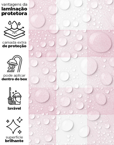Os tons de rosa pastel se misturam em um xadrez delicado, criando uma atmosfera lúdica e sonhadora, perfeita para acompanhar o crescimento dos pequenos ou para quem ama um estilo romântico e leve.