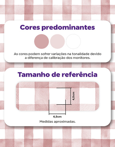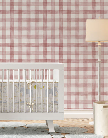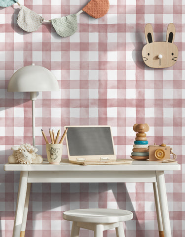 Delicado e charmoso, este papel de parede adesivo traz o clássico xadrez vichy com um suave efeito aquarelado em tom rosa bush. Perfeito para quartos infantis, salas e diversos ambientes, adicionando um toque acolhedor e sofisticado à decoração.