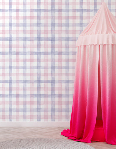 Com um toque delicado e romântico, este papel de parede adesivo combina o clássico xadrez vichy com um efeito aquarelado em suaves tons de rosa e lilás. Perfeito para quartos infantis, salas e diversos ambientes, trazendo charme e aconchego à decoração.
