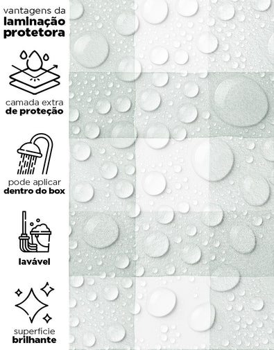 Nossos adesivos são laváveis e incluem linhas especiais para áreas úmidas, como box, pias, pisos, entre outros. Para locais com contato frequente com água ou que demandam limpezas constantes, sugerimos a aplicação da película protetora. Ela proporciona um acabamento brilhoso e pode ser facilmente higienizada com pano úmido e sabão neutro.