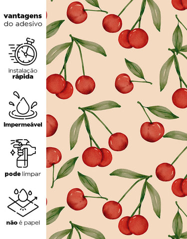 Adicione um toque vintage ao seu espaço com o Papel de Parede Cherry Vintage. Lavável e fácil de aplicar, ele é perfeito para quartos e salas, proporcionando um visual encantador e elegante.