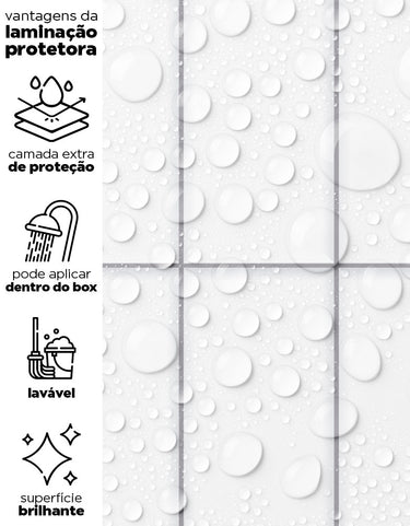 Nossos adesivos são laváveis e incluem linhas especiais para áreas úmidas, como box, pias, pisos, entre outros. Para locais com contato frequente com água ou que demandam limpezas constantes, sugerimos a aplicação da película protetora. Ela proporciona um acabamento brilhoso e pode ser facilmente higienizada com pano úmido e sabão neutro.