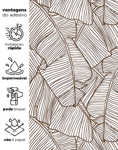 Adicione um toque tropical ao seu ambiente com o Papel De Parede Folha De Bananeira Marrom Adesivo. Lavável e fácil de aplicar, ele é ideal para quartos e salas, proporcionando um visual natural e elegante.