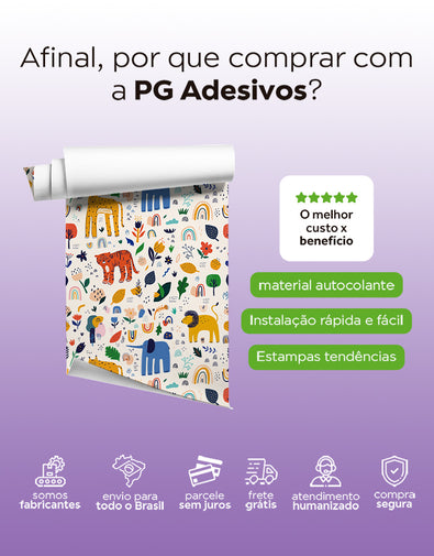 Crie um ambiente aventureiro e estiloso com o Papel de Parede Infantil Safari Boho. Lavável e fácil de aplicar, ele é ideal para quartos infantis, proporcionando um visual moderno e divertido.