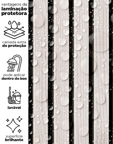 Nossos adesivos são laváveis e incluem linhas especiais para áreas úmidas, como box, pias, pisos, entre outros. Para locais com contato frequente com água ou que demandam limpezas constantes, sugerimos a aplicação da película protetora. Ela proporciona um acabamento brilhoso e pode ser facilmente higienizada com pano úmido e sabão neutro.
