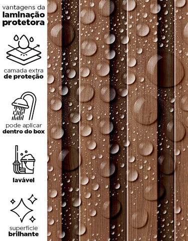 Nossos adesivos são laváveis e incluem linhas especiais para áreas úmidas, como box, pias, pisos, entre outros. Para locais com contato frequente com água ou que demandam limpezas constantes, sugerimos a aplicação da película protetora. Ela proporciona um acabamento brilhoso e pode ser facilmente higienizada com pano úmido e sabão neutro.