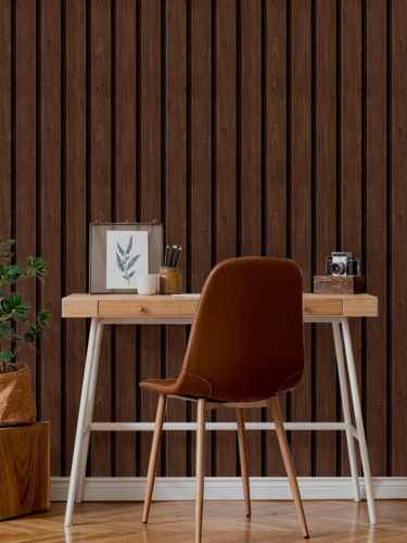 Dê um toque rústico ao seu ambiente com o Papel de Parede Madeira Ripada Larga Chocolate. Lavável e fácil de aplicar, ele é perfeito para qualquer espaço, proporcionando um visual aconchegante e natural.