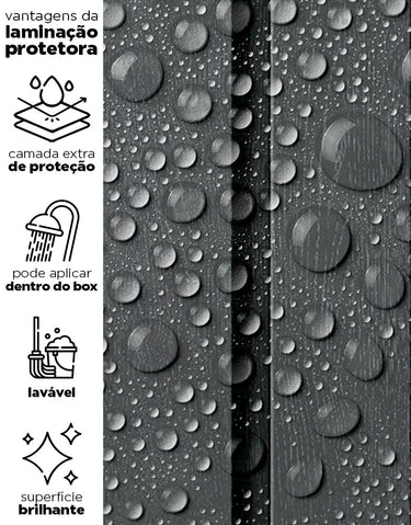 Nossos adesivos são laváveis e incluem linhas especiais para áreas úmidas, como box, pias, pisos, entre outros. Para locais com contato frequente com água ou que demandam limpezas constantes, sugerimos a aplicação da película protetora. Ela proporciona um acabamento brilhoso e pode ser facilmente higienizada com pano úmido e sabão neutro.