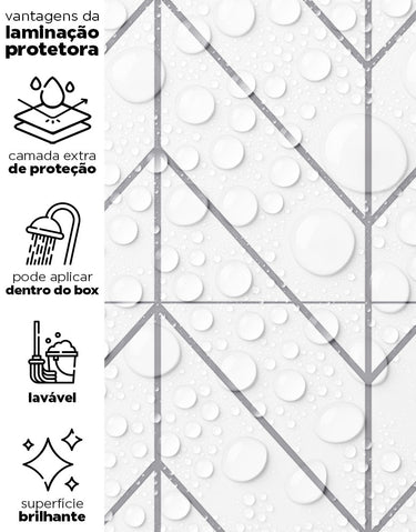 Nossos adesivos são laváveis e incluem linhas especiais para áreas úmidas, como box, pias, pisos, entre outros. Para locais com contato frequente com água ou que demandam limpezas constantes, sugerimos a aplicação da película protetora. Ela proporciona um acabamento brilhoso e pode ser facilmente higienizada com pano úmido e sabão neutro.