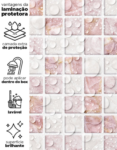 Nossos adesivos são laváveis e incluem linhas especiais para áreas úmidas, como box, pias, pisos, entre outros. Para locais com contato frequente com água ou que demandam limpezas constantes, sugerimos a aplicação da película protetora. Ela proporciona um acabamento brilhoso e pode ser facilmente higienizada com pano úmido e sabão neutro.