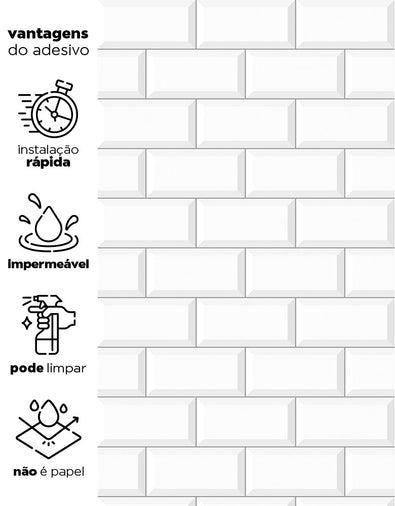 Crie um ambiente clean com o Papel de Parede Tijolinho Metro White. Lavável e fácil de aplicar, ele é perfeito para cozinhas e banheiros, proporcionando um visual moderno e elegante.