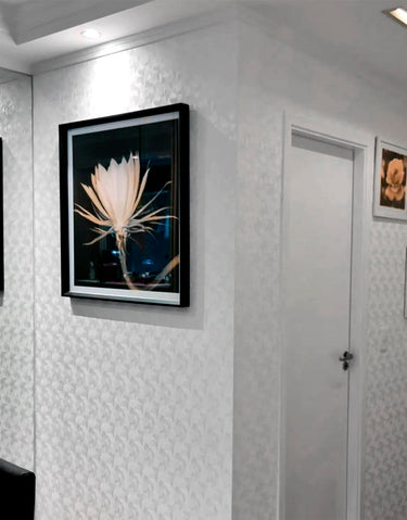 O acabamento normal permite uma limpeza suave e é ideal para ambientes menos expostos à umidade e ao desgaste diário. Já o acabamento com película protetora, que possui um leve brilho, oferece uma camada extra de proteção, tornando o papel de parede muito mais resistente e durável.