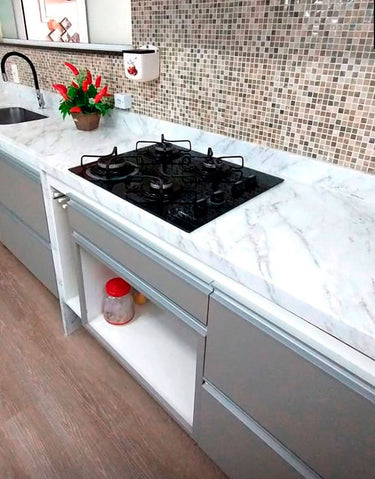 Eleve seu espaço a um novo patamar com o Revestimento Adesivo Mármore Calacata Brilho da PG Adesivos! Este adesivo premium reproduz fielmente o famoso mármore Calacata, com seu branco imaculado e veios dourados marcantes, em um acabamento brilhante que reflete luz e sofisticação.