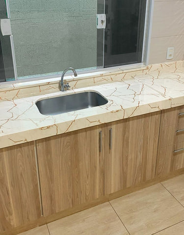 Eleve o nível do seu projeto com o Revestimento Adesivo Mármore Crema Marfil Brilho, que reproduz fielmente a elegância do mármore bege clássico. Com tonalidade suave e veios naturais em acabamento brilhante, este adesivo transforma paredes, móveis e superfícies em ambientes sofisticados. Resistente e de fácil aplicação, é ideal para quem deseja um visual premium sem obras demoradas.