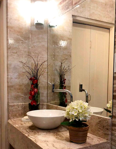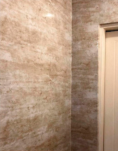 O Revestimento Adesivo Mármore Travertino Brilho reproduz fielmente a beleza natural do mármore travertino em um acabamento brilhante e sofisticado. Com tonalidades beges e veios marcantes, este adesivo transforma paredes, móveis e bancadas em superfícies elegantes, perfeitas para criar ambientes luxuosos sem obras.